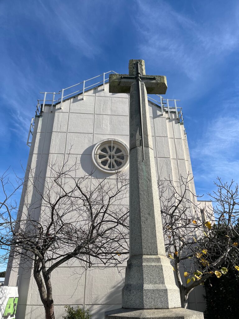 The granite cross is the only public memorial that survived the 1931 earthquake. It originally stood in front of the former cathedral, a brick building which collapsed in the quake with the loss of two lives.